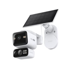 Tapo C645D KIT to zaawansowany, obrotowy zestaw dwóch kamer monitorujących zasilany energią słoneczną, który łączy w sobie stały, ultraszerokokątny obiektyw 2K o polu widzenia 165° oraz obrotowy teleobiektyw 2K z 4,9-krotnym przybliżeniem, oferując niezależną kontrolę każdego z obiektywów i precyzyjny monitoring dwóch obszarów jednocześnie. Dzięki możliwości obrotu teleobiektywu w zakresie 360° w poziomie i 120° w pionie, kamera zapewnia pełne pokrycie przestrzeni, a zsynchronizowane śledzenie Smart sprawia, że gdy stały obiektyw wykryje ruch, obrotowy automatycznie podąża za celem, nie tracąc go z pola widzenia. Wystarczy zaledwie 1 godzina światła słonecznego, aby zapewnić urządzeniu energię na cały dzień pracy, a wbudowana bateria podtrzymująca o pojemności 10000 mAh gwarantuje do 120 dni działania nawet podczas długich okresów zachmurzenia, co pozwala na montaż kamery w miejscach bez dostępu do gniazdka elektrycznego.