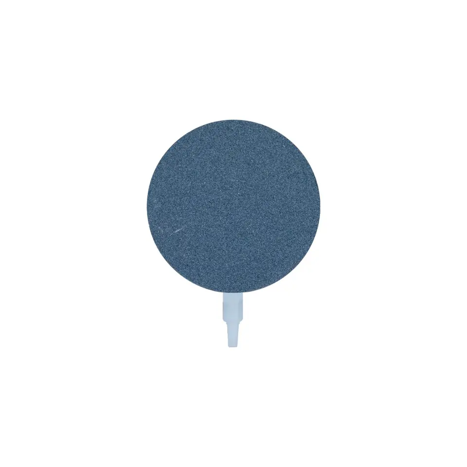 Okrągły kamień napowietrzający dedykowany dla wszystkich oczek wodnych. Podłączony do pompy, bądź napowietrzacza (,,brzęczyka”), zapewnia optymalne natlenienie wody, niezbędne dla życia mieszkańców oczka. Właściwe napowietrzanie stawu jest szczególnie ważne latem, ze względu na spadającą wraz ze wzrostem temperatury wody, rozpuszczalność tlenu. Niemniej kluczowe okazuje się zimą. Kamień, połączony z pompą, uniemożliwia zamarznięcie powierzchni oczka, pozwalając przetrwać zimującym przy dnie rybom. Zapobiega powstawaniu stref beztlenowych, będących źródłem groźnego dla organizmów wodnych siarkowodoru. Produkt, choć dedykowany do oczek wodnych, sprawdzi się też w dużych akwariach podczas sytuacji wzmożonego zapotrzebowania na tlen (np. przy kuracji ryb z użyciem niektórych leków jak zieleń malachitowa czy błękit metylenowy).