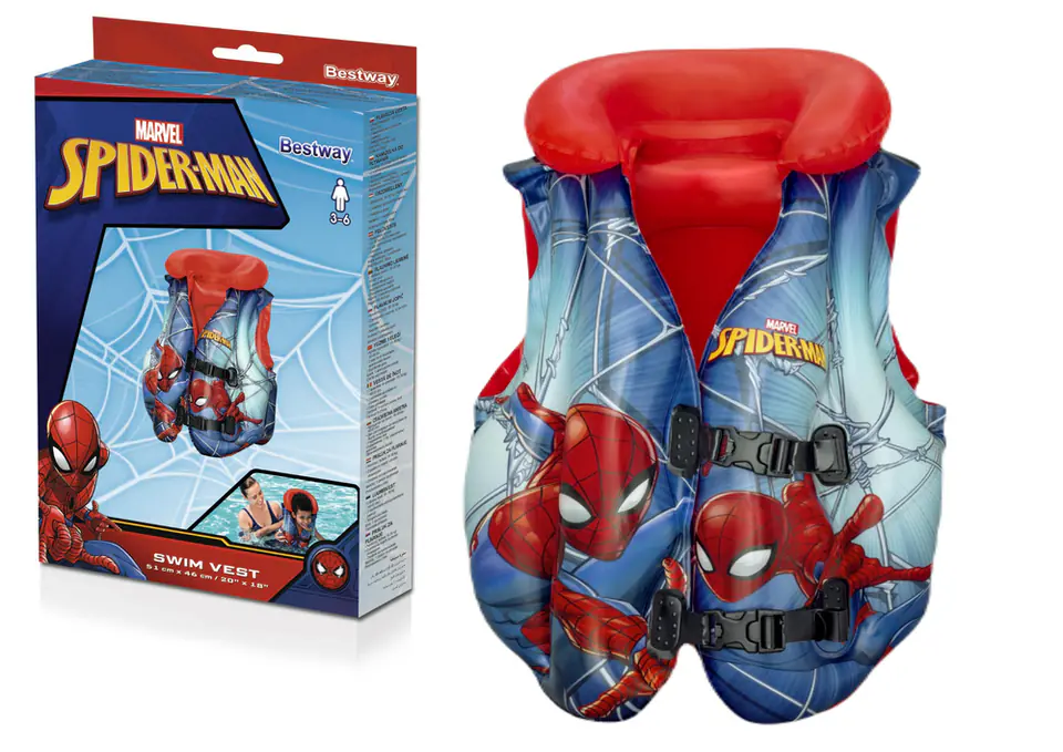 Dmuchana kamizelka z motywem Spider-mana,to idealne rozwiązanie dla dzieci, które jeszcze nie czują się pewnie w wodzie ale chcą nauczyć się pływać. Dzięki kamizelce będą mogły poczuć się bezpiecznie w wodzie. Jest ona zamykana na dwie klamry dzięki czemu dziecko nie wypadnie z niej a długość paska jest regulowana i idealnie dostosowuje się do maluszka. Stworzona jest z wytrzymałego tworzywa PCV, które jest odporne na uszkodzenia.