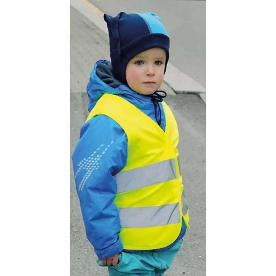 KAMIZELKA ODBLASKOWA DLA DZIECI ŻÓŁTA sprawi, że Twoje dziecko będzie dobrze widoczne z daleka, co zwiększy poziom jego bezpieczeństwa podczas powrotu ze szkoły podczas brzydkiej pogody, jazdy na jednośladzie po zmroku lub podczas awarii samochodu.