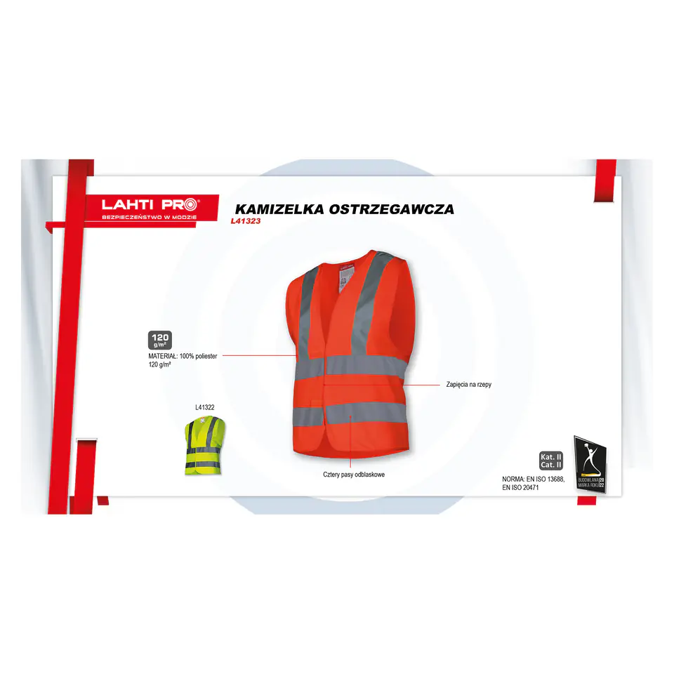 KAMIZELKA OSTRZEGAWCZA 4 PASY, POMARAŃCZOWA, "L", CE, LAHTI
