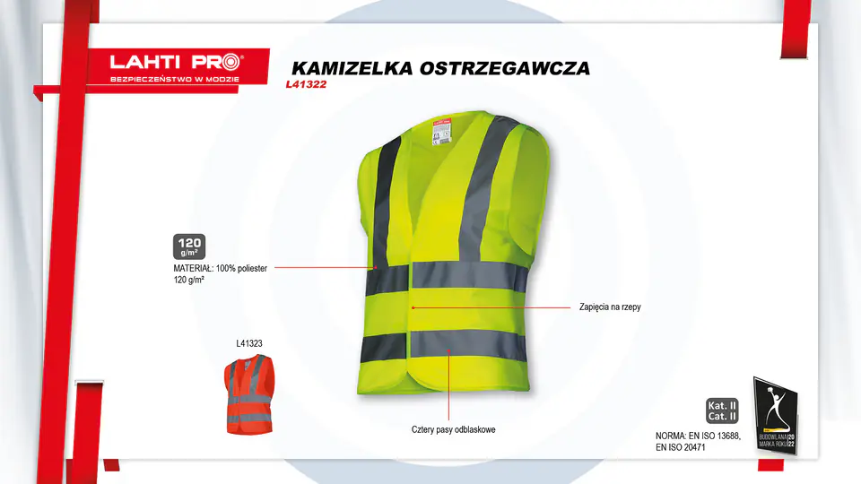 KAMIZELKA OSTRZEGAWCZA 4 PASY, ŻÓŁTA, "S", CE, LAHTI