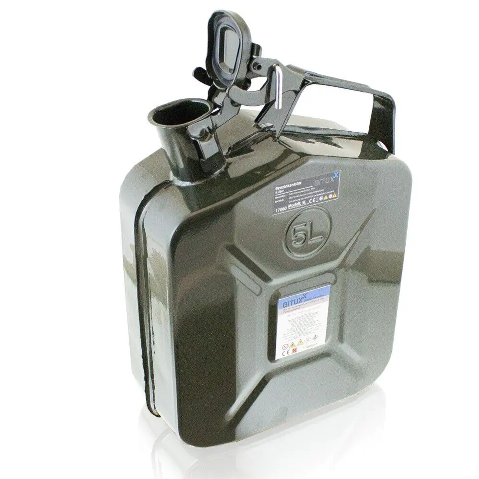 .Zestaw kanister metalowy z lejkiem, to idealne rozwiązanie dla wszystkich, którzy potrzebują przenośnego i bezpiecznego transportera na paliwo lub oleje. SET składający się z kanistra o pojemności 5 litrów oraz niezbędnego do wlewu lejka, okaże się niezastąpionym w przypadku potrzeby przechowywania zapasowego lub rezerwowego paliwa. Kanister wykonany jest z wysokiej jakości stali walcowanej na zimno o grubości 0,8 mm, co gwarantuje wytrzymałość i trwałość produktu. Wymiary 240x120x310mm sprawiają, że jest on łatwy do przechowywania i transportu. Wyposażony w szczelnie dopasowany korek zapewniający trwałe zamknięcie.