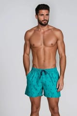 Wygodne kąpielówki męskie z najnowszej kolekcji marki Henderson. W modnym kolorze, wykonane z szybkoschnącej tkaniny pokrytej drobnym, marynarskim wzorem. Świetne zarówno do sportów plażowych jak i zwykłego przechadzania się, bardzo komfortowe. Wewnątrz podszewka. Po bokach dwie, kieszonki, trzecia z tyłu, ze szlufką. Skład: 100% poliester.