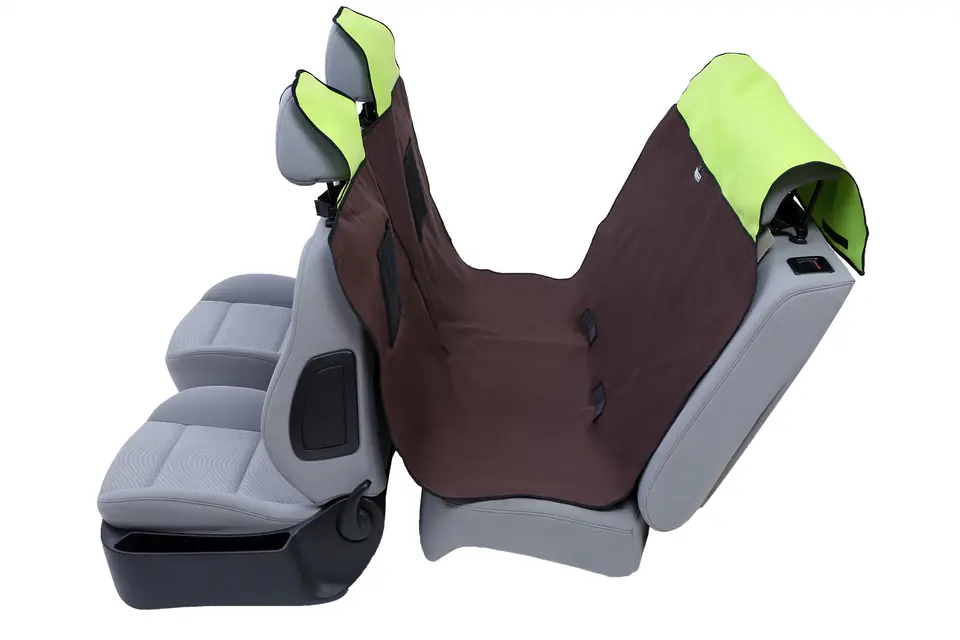 Kardimata Activ – wersja z zamkiem – nieprzemakalny pokrowiec z OCHRONNYMI NAKŁADKAMI NA ZAGŁÓWKI oraz KIESZENIAMI na akcesoria. Wersja z zamkiem umożliwia jednoczesne przewożenie psa wraz z pasażerem ( wystarczy rozpiąć zamek z jednego zagłówka i odpiąć klamrę z zagłówka). Kardimata przeznaczona jest w szczególności dla psów dużych ras które zajmują całą tylną kanapę lub dla kilku psów mniejszych ras.
