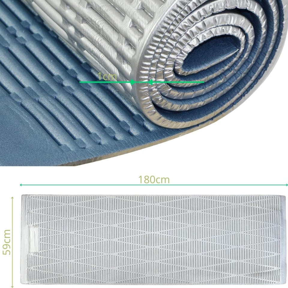 Parametry:- Wymiary ok.: 180x59x1cmMateriał: XPE, aluminiumKolor: srebrny, niebieskiMarka: Redcliffs