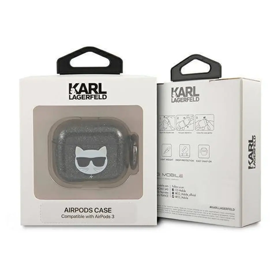 Karl Lagerfeld Choupette Head Glitter - Etui AirPods 3 czarny