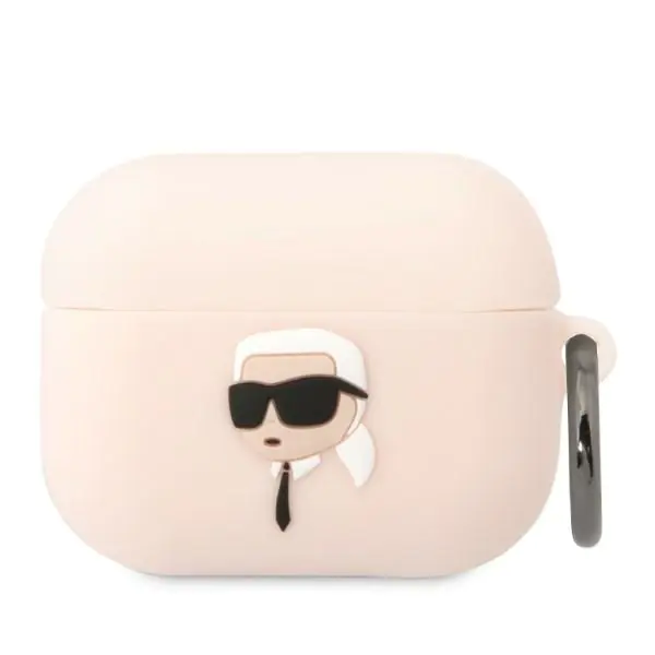 Modne i stylowe etui Karl Lagerfeld z kolekcji Silicone Karl's Head 3D na zestaw słuchawkowy AirPods Pro.