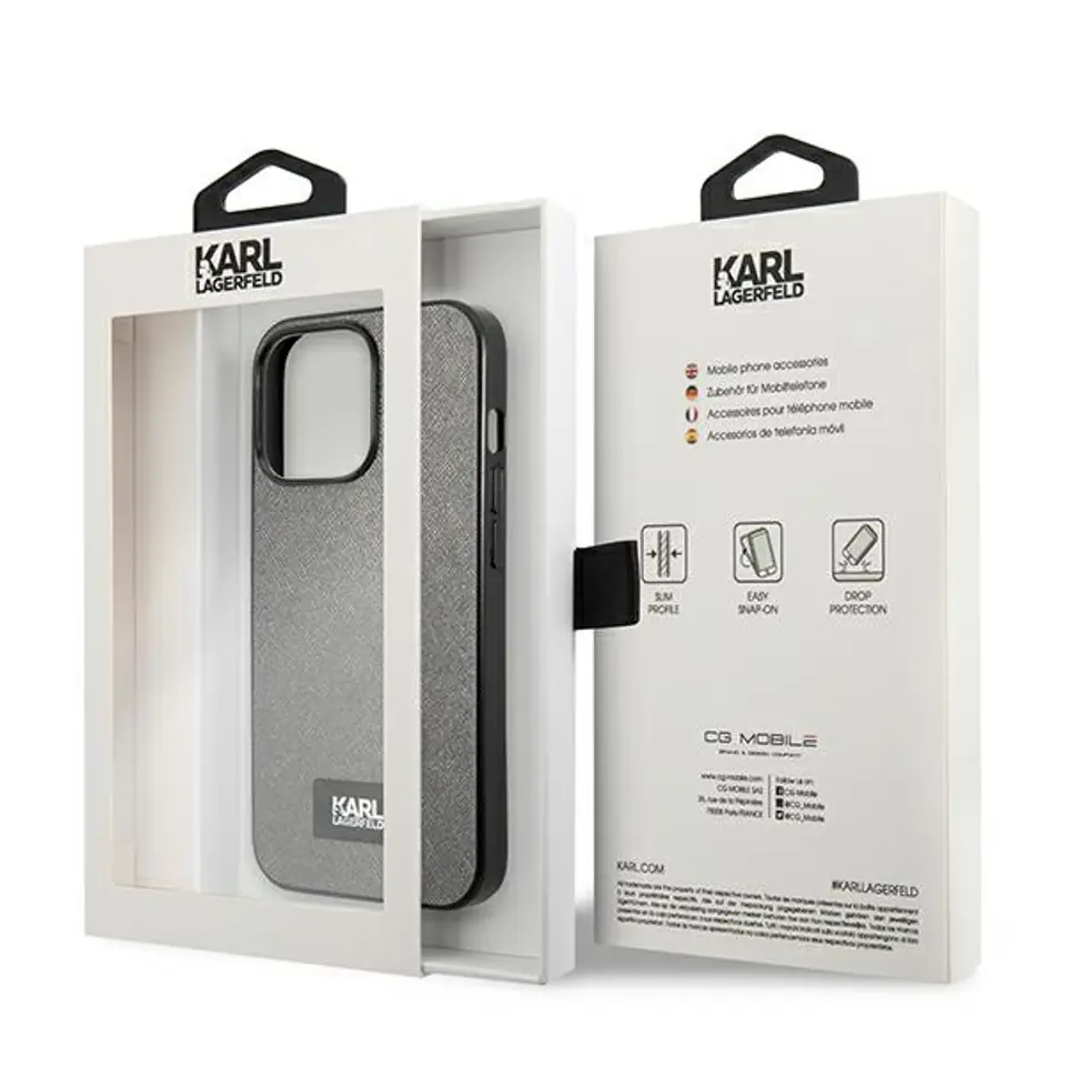 Karl Lagerfeld - Saffiano Plaque Collection to wyjątkowa seria pokrowców dzięki której będziesz prezentować się stylowo i modnie.Etui wykonane są z wysokiej klasy eko skóry saffiano i ozdobione metalowym logo legendarnego projektanta.
