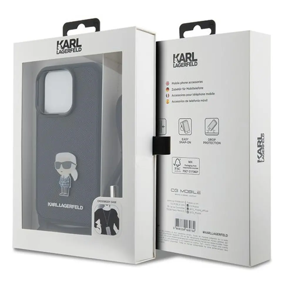 Karl Lagerfeld Crossbody Saffiano Monogram Metal Pin Karl & Choupette to wyjątkowa i zarazem awangardowa seria pokrowców, dzięki której Twój telefon stanie się stylowym dodatkiem do Twojego codziennego outfitu. Akcesoria z kolekcji Saffiano Karl & Choupette są znakomitą propozycją dla osób, które szukają wyjątkowego etui do ochrony swojego iPhone`a w luksusowym stylu.