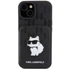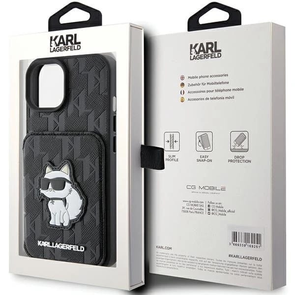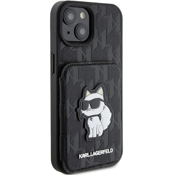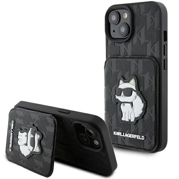 Karl Lagerfeld KLHCP15SSAKCNSCK iPhone 15 / 14 / 13 6.1" czarny/black hardcase Saffiano Cardslots and Stand Monogram Choupette