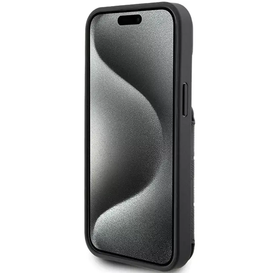 Kolekcja Karl Lagerfeld Saffiano Monogram Cardslot & Stand Choupette to doskonały sposób na podkreślenie swojego przywiązania do tego cenionego domu mody oraz nadanie Twojemu iPhone'owi nowego designu. Do produkcji wykorzystano wysokiej jakości skórę ekologiczną, którą pokryto monogramem inicjałów słynnego projektanta. Dodatkowo, na pleckach pokrowca umieszczono dużą naszywkę z podobizną Karla. Metalowy emblemat doskonale komponuje się z całą stylistyką pokrowca, dodając mu wyrazistego charakteru. Ten pokrowiec to połączenie stylu, ochrony i efektownego wyglądu.