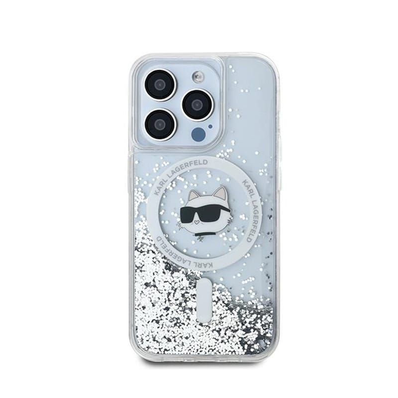 Karl Lagerfeld KLHMP14LLGCHSGH iPhone 14 Pro 6.1" hardcase transparent Liquid Glitter Choupette Head Magsafe