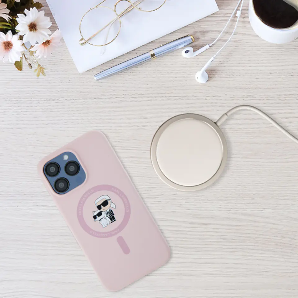 Seria ta wyróżnia się unikalnym wzornictwem, prezentując charakterystyczną podobiznę słynnej pupilki Choupette oraz ikonicznego projektanta Karla Lagerfelda. Te delikatne detale nie tylko dodają elegancji pokrowcom, ale również stanowią symbol autentyczności oraz doskonałej jakości, za którą znana jest marka. Dodatkowo, magnetyczny pierścień nie tylko przyciąga wzrok, ale także wzmacnia funkcjonalność etui. Umieszczone na dole logo domu mody Karl Lagerfeld jest subtelnym akcentem luksusu, idealnie podkreślającym styl właściciela iPhone'a.