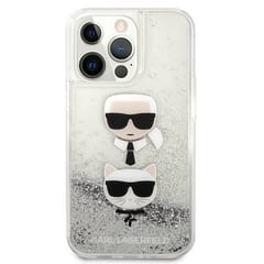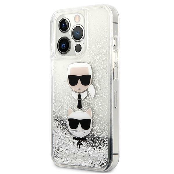 Karl Lagerfeld Liquid Glitter Karl & Choupette Head - Etui iPhone 13 Pro Max srebrny