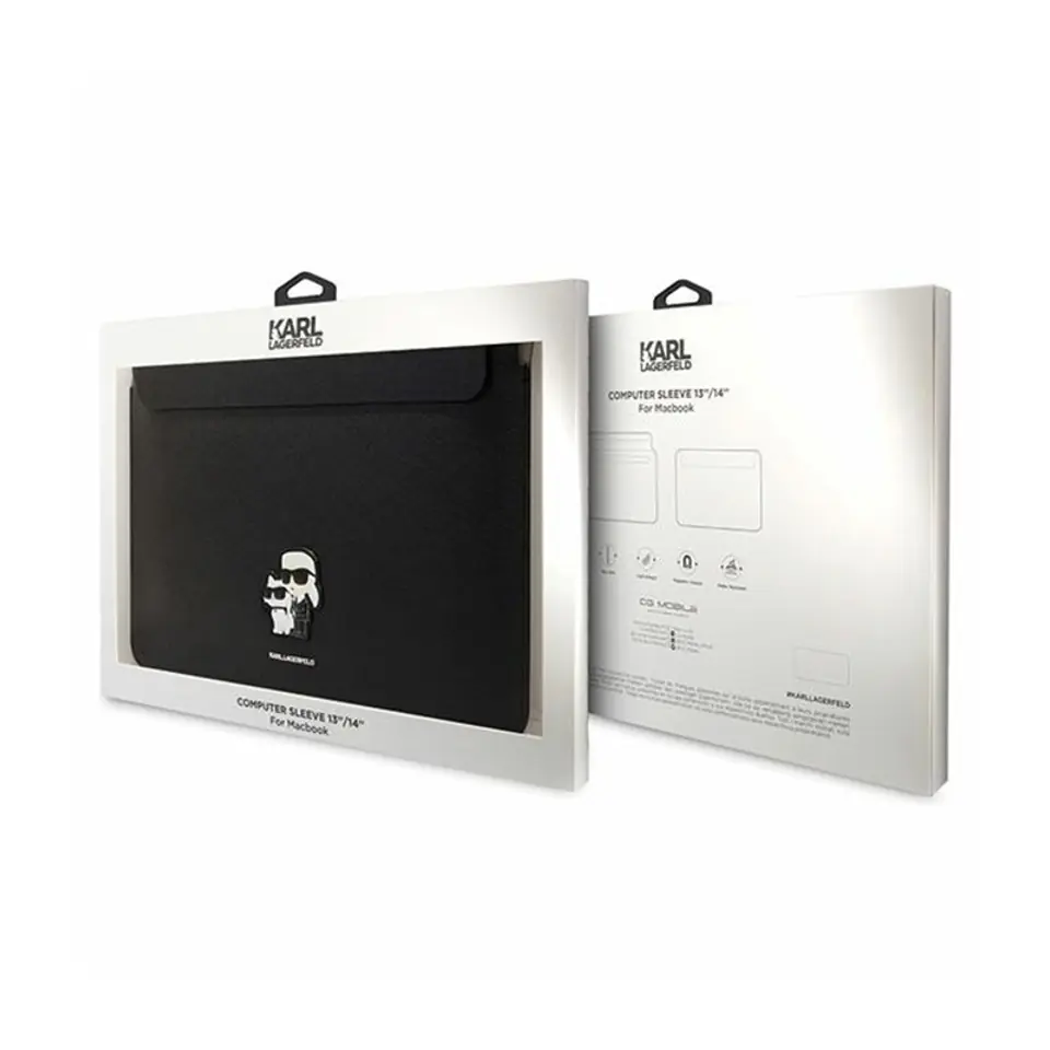 Modny i stylowy pokrowiec na Twój notebook czy tablet- oto najnowsza propozycja ochronnego futerału sygnowanego przez ceniony dom mody Karl Lagerfeld. Pokrowiec typu sleeve z kolekcji Saffiano Karl&Choupette jest inny niż wszystkie, jest bardzo funkcjonalny oraz zapewnia efektowny i ekskluzywny wygląd. Kolekcja została ozdobiona trójwymiarową naszywką z wizerunkiem słynnego projektanta i jego ukochanej kotki Choupette. Dodatkowa naszywka z logiem domu mody Karl Lagerfeld jest potwierdzeniem doskonałej jakości i autentyczności produktów, za które odpowiedzialna jest ta znana marka.