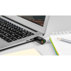 Fabrycznie nowa, wysokiej jakości 6-kanałowa karta muzyczna 3D na USB z systemem 5.1. Prosta instalacja - urządzenie typu plug&play - w celu uruchomienia, wystarczy podłączyć kartę do USB.