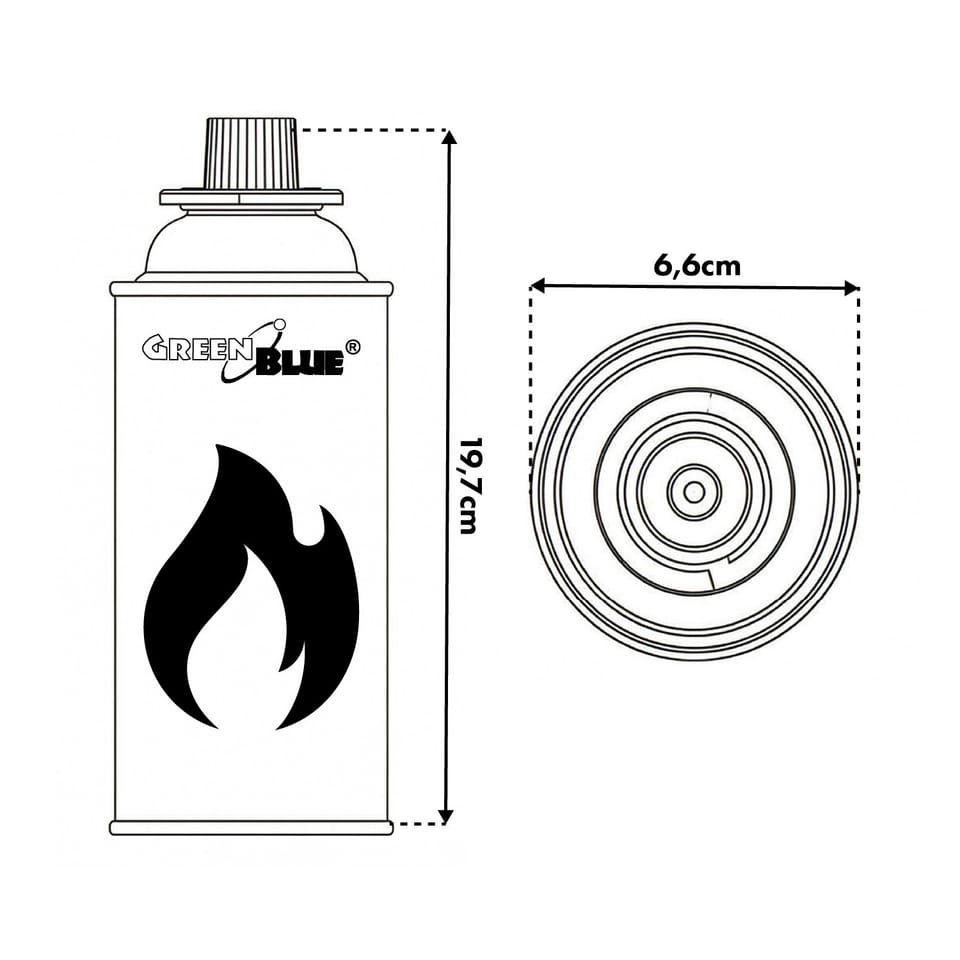 Kartusz gazowy 227g GreenBlue. certyfikat: Pi 0875, zgodny z normą EN417, butan, zakres działania -10°c do+ 40°c, GB227