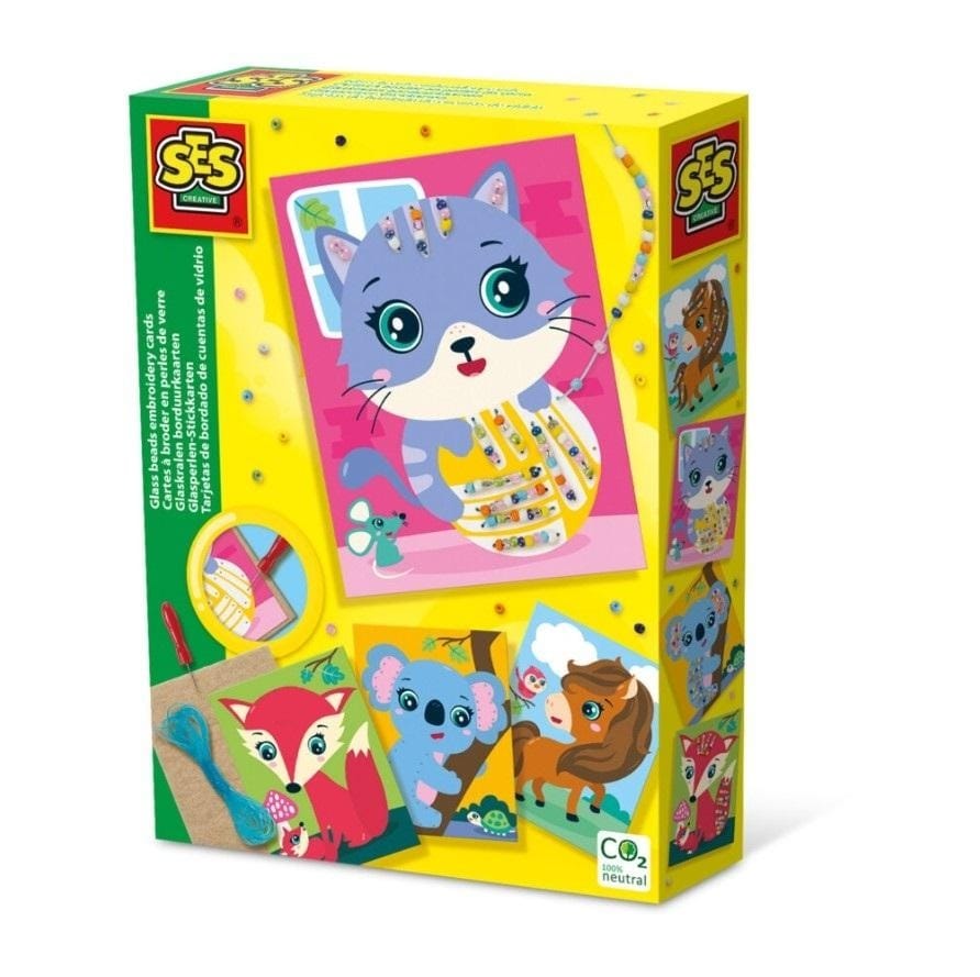 Cztery wesołe karty do wyhaftowania szklanymi koralikami! Umieść wybraną kartę na filcu i nakłuj wszystkie otwory w karcie za pomocą igły do nakłuwania. Następnie nawlecz wesołe szklane koraliki na elastyczną nić i udekoruj wszystkie karty! - 4 karty do haftowania - Filc do nakłuwania - Igła do nakłuwania - Szklane koraliki w różnych kolorach - Elastyczna nić; - Instrukcja;
