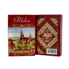 Talia kart do brydża dostępna jest w dwóch kolorach czerwonym i srebrnym. Na awersach widnieją najpiękniejsze zabytki oraz miejsca, które warto zobaczyć w Polsce malowane akwarelą.(55 kart do gry).