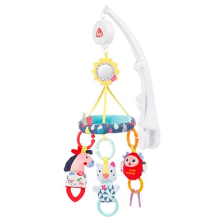 Karuzela Podróżna z Pozytywką z Kolekcji: Kolorowi Karuzela Podróżna z Pozytywką z Kolekcji: Kolorowi PrzyjacieleZabawka oferuje wszystko co sprawia, że serca małych odkrywców biją szybciej. Różnorodność kolorów i materiałowa mieszanka miękkiego weluru, frotte i bouclette, zapraszają do dotykania i głaskania. Kształt, kolory i bezpieczne lusterko szczególnie pobudzają ciekawość. Mechaniczna pozytywka pozwala postaciom tańczyć i łagodnie uspokaja w rytmie popularnej kołysanki. Specjalnie zaszyte końcówki zachęcają do gryzienia, ssania, targania i ściskania. W małym, bezpiecznym lusterku można się przeglądać. Gryzaczek łagodzi ból podczas fazy ząbkowania dziecka. Karuzelę bezpiecznie mocujemy do fotelika dziecięcego, wózka, kojca i łóżeczka. Szybko staje się więc wiernym towarzyszem w domu i w podróży zawsze zapewniając dobry nastrój! Zabawka wykonana z wielu, miłych w dotyku, materiałów. W ciągu dnia pierścień z figurkami można zdjąć do zabawy. Wzbudza ciekawość i stymuluje percepcję dziecka. Pozytywka łagodnie uspokaja dziecko przed snem. Ręcznie nakręcana pozytywka nie wymaga stosowania baterii. Gryzaczek łagodzi ból podczas ząbkowania. Grzechotka, piszczałka, szeleszczący papier i bezpieczne lusterko, wyzwalają chęć zabawy. Łatwa w montażu. Można prać w temp. 30C., po odłączeniu od mechanizmu pozytywki. Wymiary produktu: 45 cm x 17 cm 17 cm. Wszystkie zabawki niemieckiej marki FEHN są bezpieczne dla dzieci od 0 lat. Wykonane są z najlepszej jakości materiałów. Spełniają normy EN71, CE, badane w instytutach Stiftung Warentest lub Ökotest.