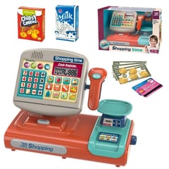 Elektroniczna kasa sklepowa z dotykowym panelem, skanerem, kalkulatorem, wagą i akcesoriami. Klawiatura dotykowa z licznymi przyciskami, Kasa mówi w języku angielskim, Wyświetlacz LCD, Czytnik kart płatniczych, Waga, Światło i dźwięk, Skaner wydaje realistyczne dźwięki, Akcesoria: banknoty, bilon, karta, Otwierana szufladka. Kasa fiskalna do odgrywania ról może pomóc dzieciom w ćwiczeniu umiejętności dodawania, odejmowania i mnożenia poprzez skanowanie zabawek z supermarketu i naciśnięcie przycisków numerycznych jak w prawdziwym supermarkecie.