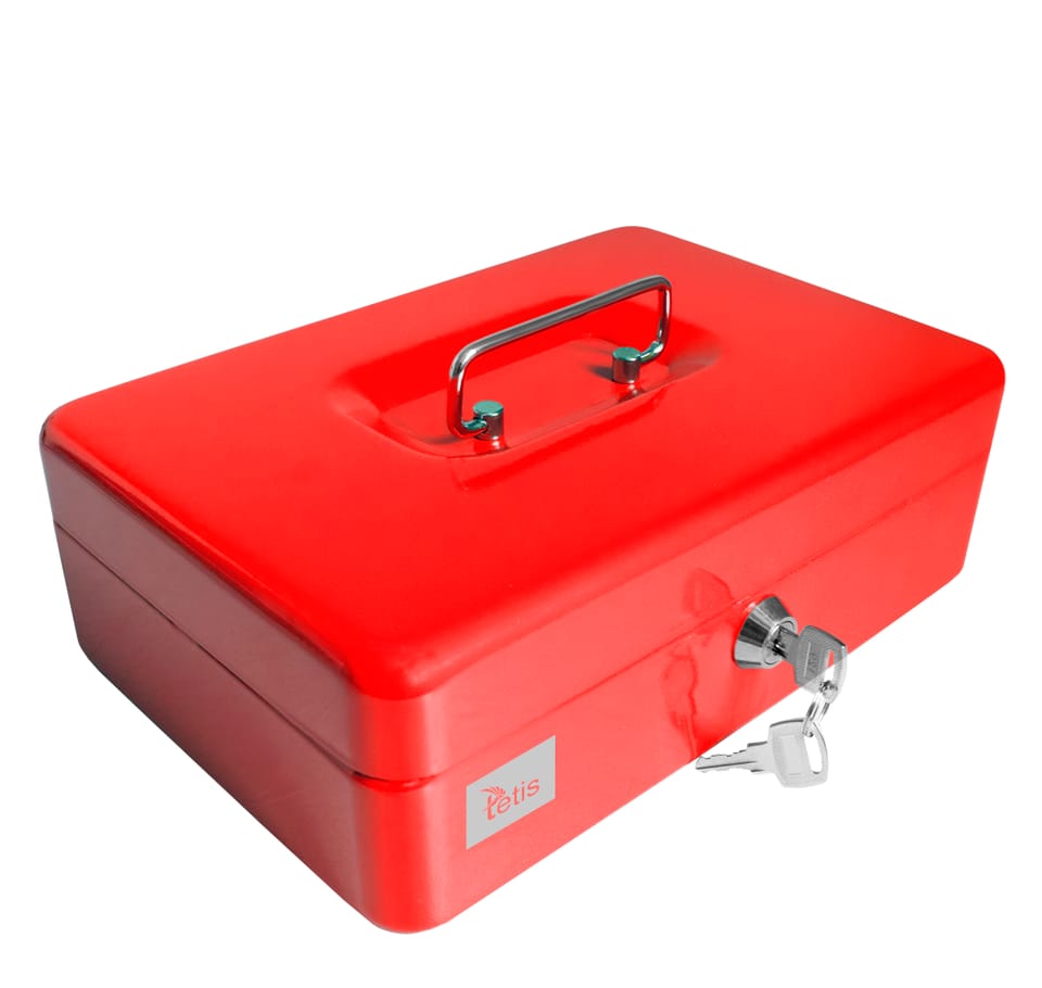 Kasetka metalowa w rozmiarze 10” ze składanym uchwytem do przenoszenia. Lakierowana obudowa. Jest wyposażona w tackę z ośmioma przegródkami. Posiada dodatkowy schowek pod wyjmowaną tacką. Zamknięcie na zamek bezpieczeństwa z dwoma kluczami.