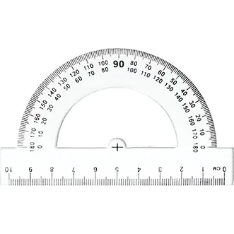 Kątomierz wykonany z przeLroczystego, trwalego tworzywa.