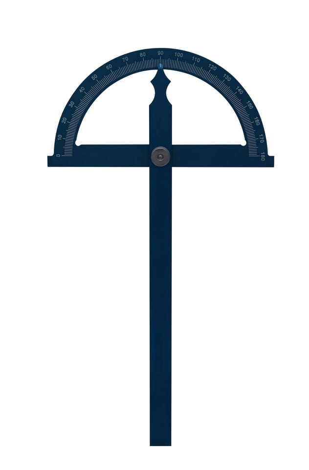 Kątomierz tarczowy wykonany z chromowanego na mat aluminium. Tarcza posiada podziałkę w zakresie 0-180°, śruba blokująca ustala tarczę pod dowolnym kątem.