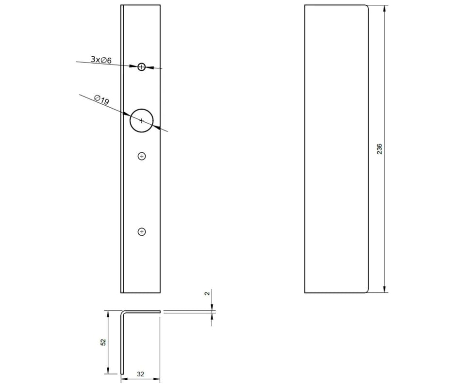 | Wymiary: | 32 x 236 x 52 mmGrubość blachy 2 mm |