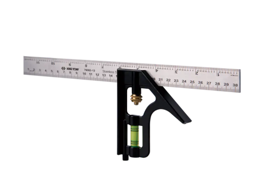 KĄTOWNIK NASTAWNY Z POZIOMICĄ 300 mm Kątownik wielofunkcyjny, metryczny i calowy oznaczone na linialeMoże odmierzać 90° i 45°Krótszy bok przesuwany wzdłuż skali z możliwością zablokowania dzięki wbudowanemu pokrętłuWbudowany wskaźnik z libellą wskazuje w przybliżeniu poziom/pion Karta produktu - 79062-12
