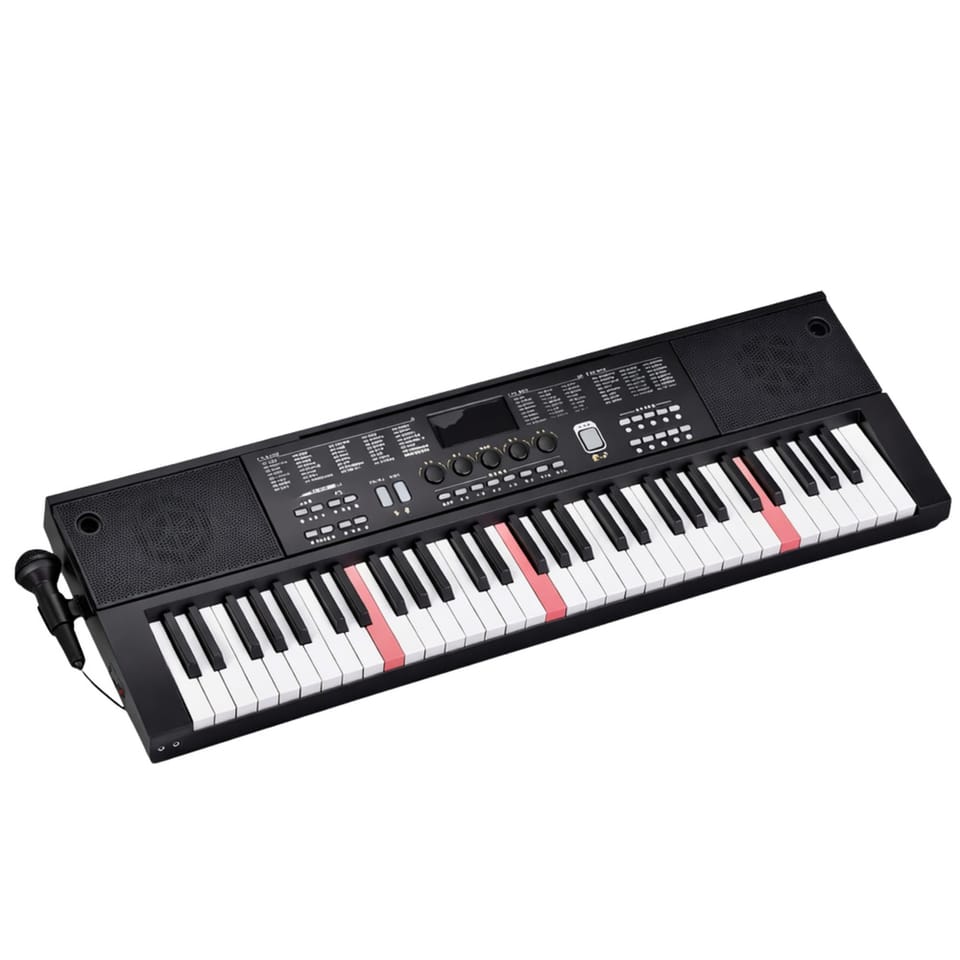 W zestawie znajduje się mikrofon, który pozwala śpiewać podczas gry, podstawka na nuty oraz kabel USB umożliwiający wygodne zasilanie. Antypoślizgowa podstawa zapewnia stabilność podczas użytkowania, a uchwyt na mikrofon zwiększa komfort zabawy. Keyboard 61 klawiszowy to nie tylko instrument, ale również doskonałe narzędzie edukacyjne, które rozwija słuch muzyczny, poczucie rytmu oraz kreatywność.