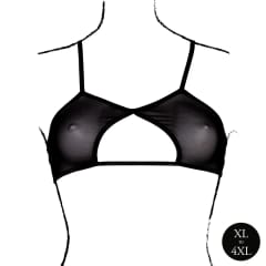 Rozpal namiętność dzięki naszemu wyjątkowemu biustonoszowi z siateczki i efektownym wycięciem, zaprojektowanemu dla pewnych siebie kobiet, które pragną zachwycić swojego partnera. Ten oszałamiający czarny biustonosz łączy w sobie elegancję z odważnym charakterem, zachwycając misternymi detalami. Unikalne wycięcie z przodu subtelnie eksponuje dekolt, a podwójne ramiączka na plecach dodają wyrafinowanego stylu. Regulowane paski gwarantują idealne dopasowanie, zapewniając jednocześnie wygodę i zmysłowy wygląd. Stworzony z myślą o komforcie i uwodzeniu, ten biustonosz podkreśla Twoje naturalne piękno i dodaje pewności siebie. Możesz nosić go samodzielnie lub pod ulubionym strojem – w każdej sytuacji zrobi niezapomniane wrażenie. Podnieś temperaturę intymnych chwil i pozwól, aby ten misternie zaprojektowany biustonosz stał się Twoją tajną bronią w sztuce uwodzenia. Przeżyj niezapomniane, pełne pasji i pożądania chwile. Dostępny w rozmiarach XL–4XL.CENA DOTYCZY TYLKO BIUSTONOSZA - MAJTKI NIE SĄ W KOMPLECIE.