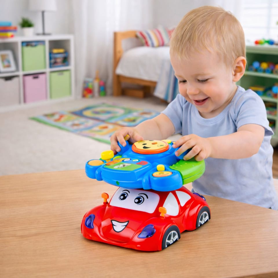 Interaktywna kierownica dla dzieci to wyjątkowa zabawka edukacyjna, która łączy w sobie funkcję symulatora jazdy, panelu muzycznego oraz efektownej zabawy światłem. Kolorowa, przyjazna konstrukcja z wesołą buźką oraz elementami przypominającymi deskę rozdzielczą samochodu sprawia, że dziecko może wcielić się w rolę małego kierowcy i rozpocząć własną przygodę na drodze.