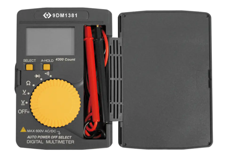 Miernik wyposażony w wyświetlacz LCD, automatyczną zmianę zakresów, przewody pomiarowe. Wymiary: 117x76x18 mm Maksymalny zakres pomiarowy napięcia DC [V]: 600. Maksymalny zakres pomiarowy napięcia AC [V]: 600. Maksymalny zakres pomiarowy rezystancji [MOhm]: 40. Częstotliwość pomiaru: 2 razy/sekundę. Test ciągłości / Test diód / Wskaźnik przeciążenia / wskaźnik poziomu baterii Karta produktu - 9DM1381