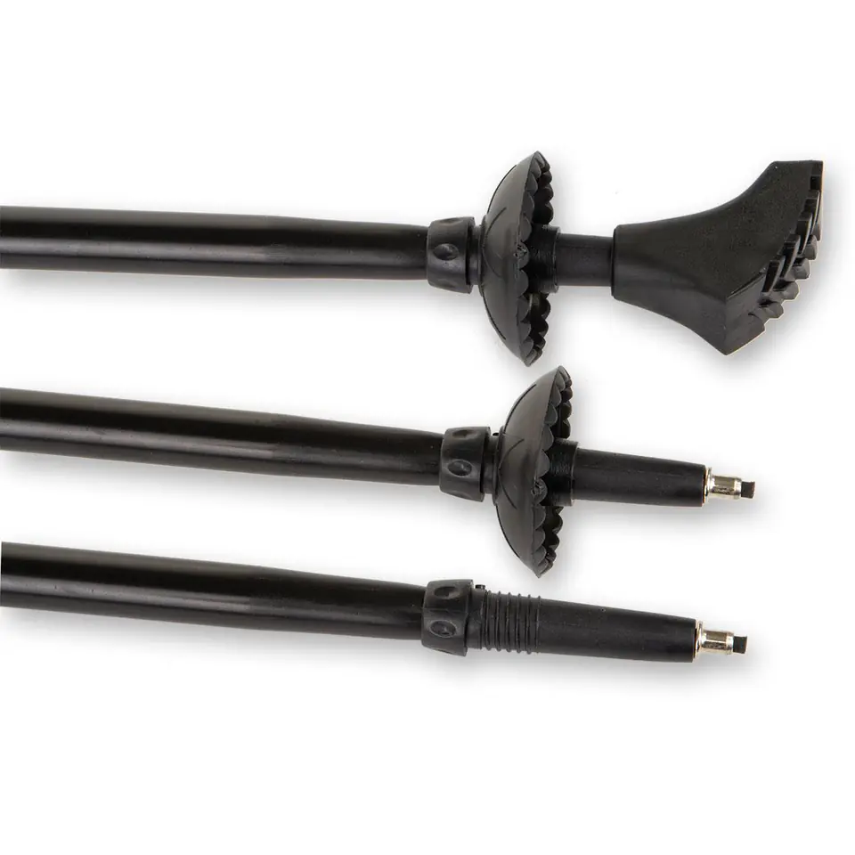 Ergonomiczna rękojeść zapewnia wygodne dopasowanie do dłoni, redukując zmęczenie podczas długich marszów. Odpinane zapięcia na nadgarstki gwarantują stabilność kijów i pozwalają na szybkie ich odczepienie bez zdejmowania całego uchwytu, co zwiększa komfort i funkcjonalność.