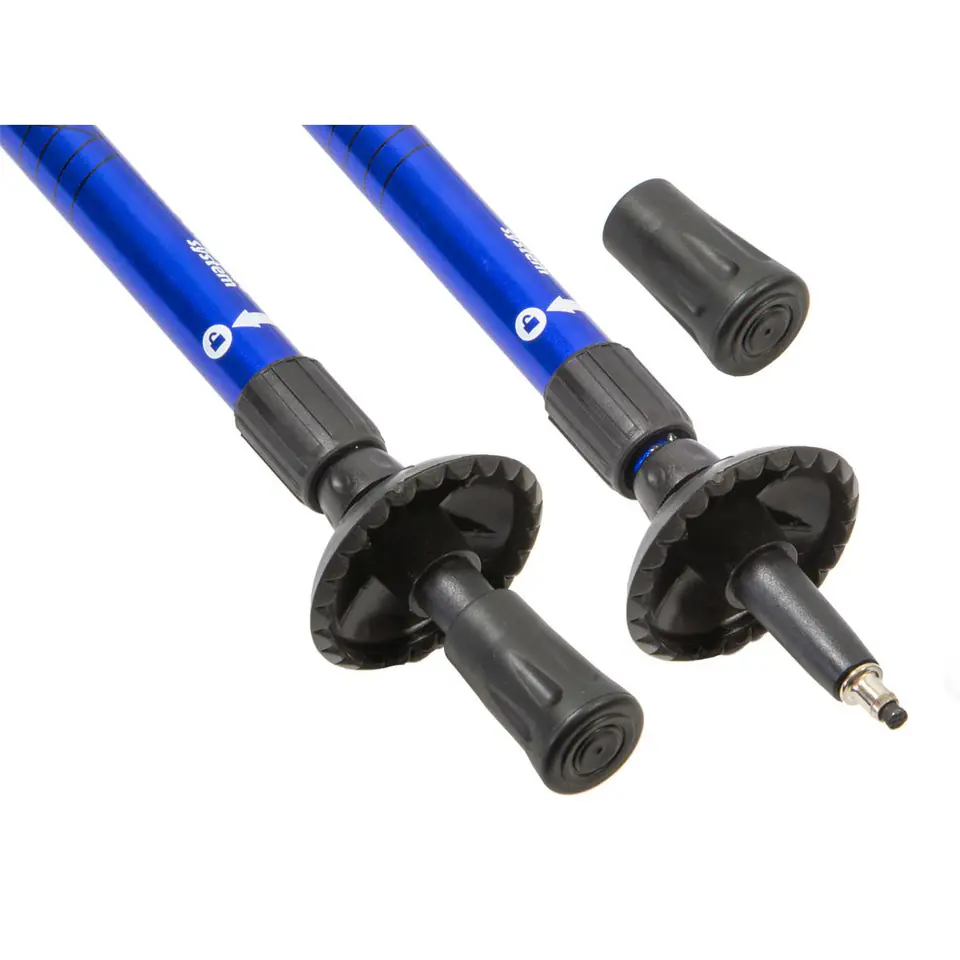 Kije są dwuczęściowe, rozkładane stopniowo, poprzez skręcanie dwóch sąsiednich segmentów, po ich rozłożeniu i ustawieniu odpowiedniej dla Ciebie długości, uruchamiana jest blokada, która ustawia na stałe kije w odpowiedniej pozycji.