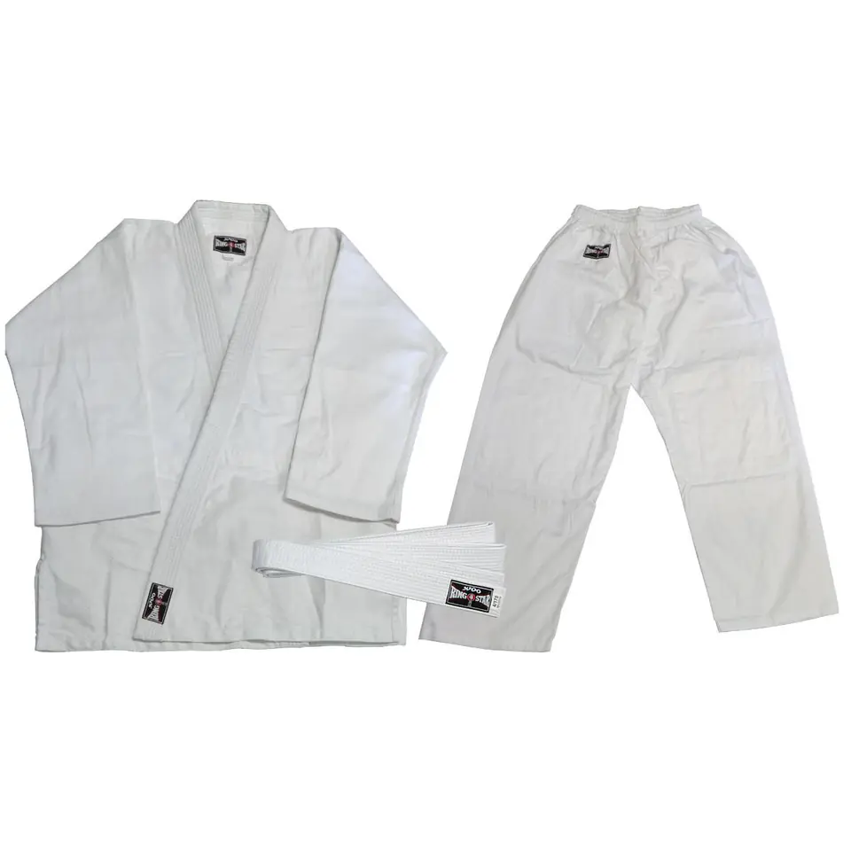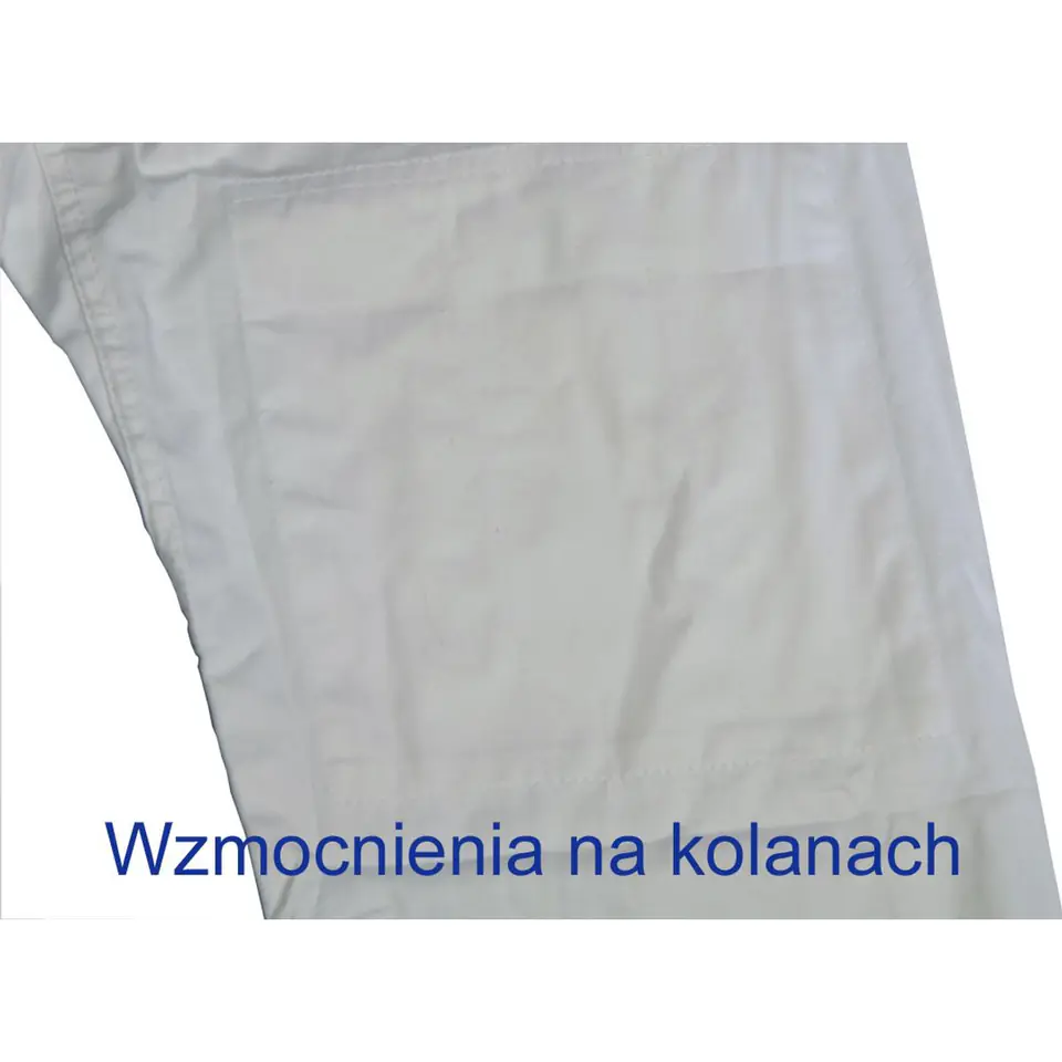 Trenuj judo w kimonie Ring Star i zdobądź kolejne stopnie! Mocne kimono dla początkujących wytrzyma sporo pojedynków, abyś stał się zwycięzcą.Klasyczne białe kimono Judo wyróżnia się trwałością i odpornością na uszkodzenia. Strój uszyto w 100% z bawełny w oparciu o tradycyjny, uniwersalny fason. Bluza ma wzmocniony kołnierzyk, spodnie są na gumce i posiadają biały pas. Zyskujesz wygodę i idealne dopasowanie.Strój sprawdzi się zarówno dla kobiet, jak i mężczyzn na treningi judo dla początkujących. Kimona Ring Star od wielu lat sprawdzają się na treningach w klubach judo i szkołach w całej Polsce. Parametry:• Rozmiar: 200 (wymiary w tabeli)• Materiały- BLUZA: bawełna plecionka 100%, gramatura 14 oz (400 g/m2)- SPODNIE: bawełna gładka 100%, gramatura 9 oz (280g/m2)• Spodnie zawierają pas na szlufki• Przeznaczenie: dla początkujących, unisex• W zestawie: bluza, spodnie, biały pas• Marka: Ring Star