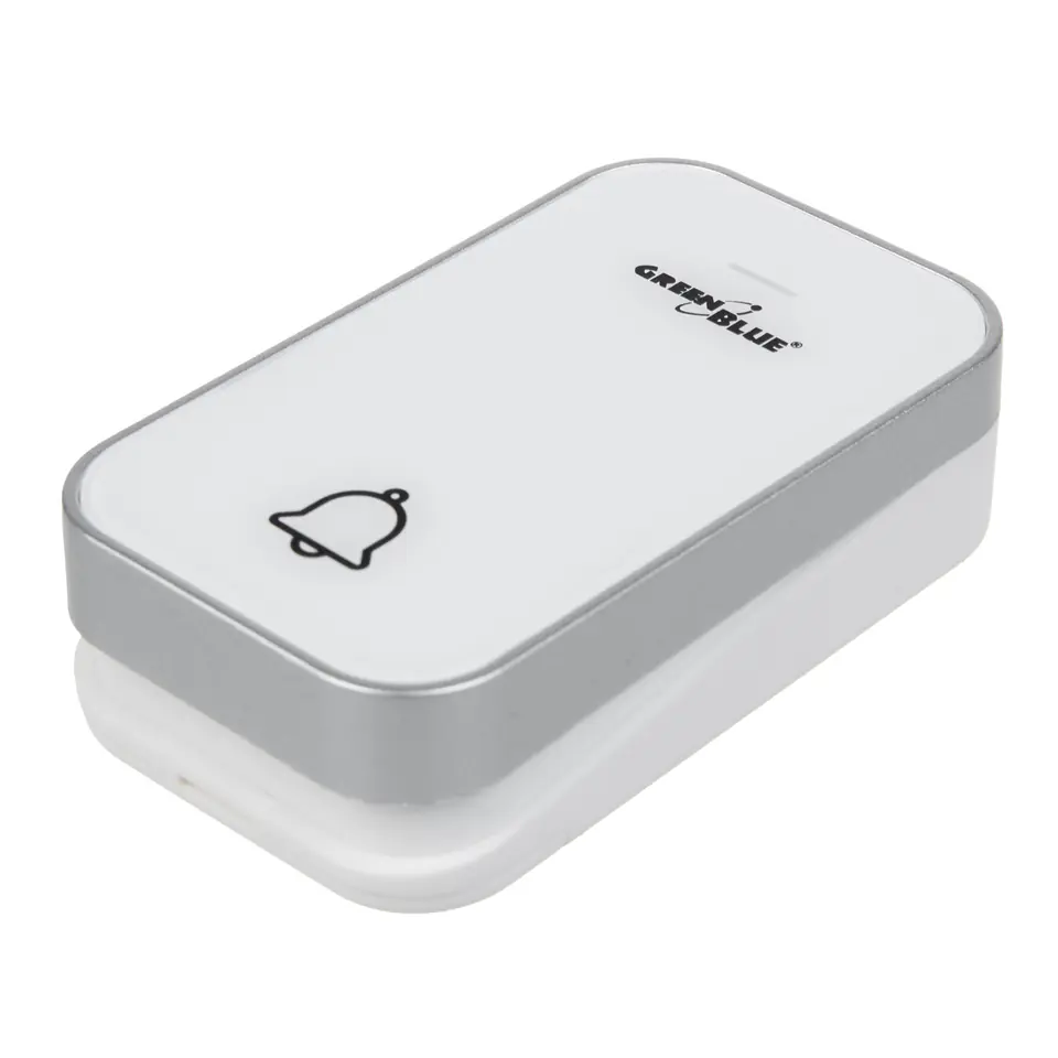 Specyfikacja- Producent: GreenBlue- Model: GB158 W- Kompatybilny z dzwonkami GreenBlue GB157- Częstotliwość pracy: 433,92 MHz- Stopień ochrony: IP44- Zasięg: do 200 m- Wymiary: 70 x 45 x 20 mm- Zasilany energią kinetyczną- Kolor: biały