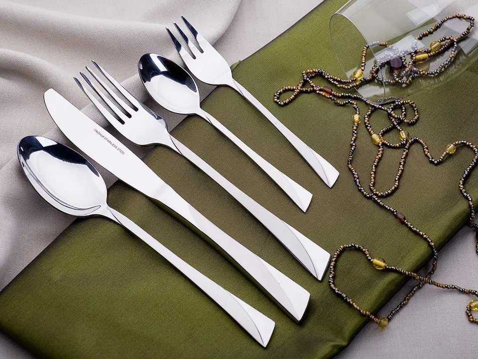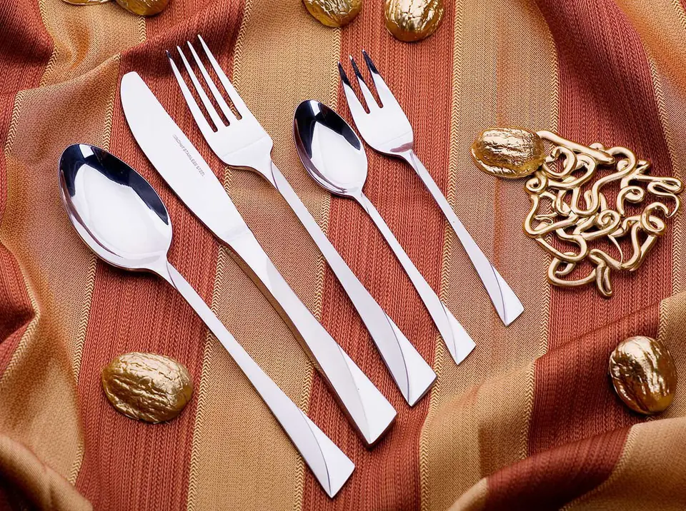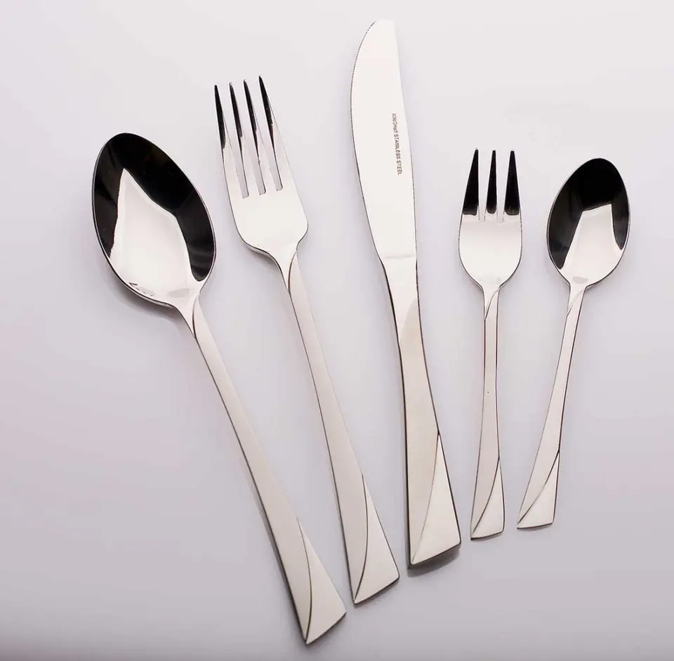 Zestaw sztućców 72 elementy polerowanych na wysoki połysk z dekoracją satynową. Wysokiej jakości stal nierdzewna. Można myć w zmywarce. Zestaw zawiera: - łyżka stołowa x 12 - widelec stołowy x 12 - nóż stołowy x 12 - łyżeczka do herbaty x 12 - widelczyk do ciasta x 12 - łyżka do warzyw x 2 - widelec do mięsa x 2 - łyżka do zupy x 1 - łyżka wazowa x 1 - łyżka do sosów x 1 - szczypce do cukru x 1 - łyżka do sałatek x 1 - widelec do sałatek x 1 - łyżeczka do cukru x 1 - łopatka do ciasta x 1