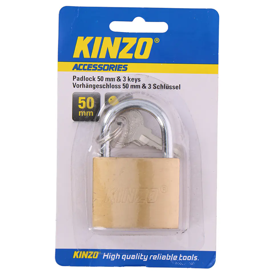 Kinzo - Kłódka mosiężna 50 mm z 3 kluczami