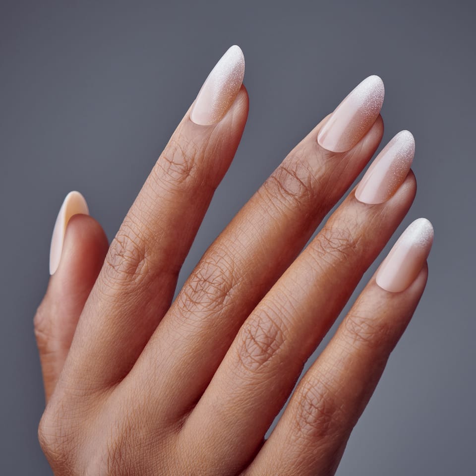 Nałóż równomierną warstwę kleju wewnątrz sztucznego paznokcia. Następnie nałóż klej również na naturalną płytkę. Dokładnie dopasuj paznokieć do skórek, delikatnie dociśnij i utrzymuj na miejscu przez około 5 sekund, aby zapewnić solidne przyleganie.