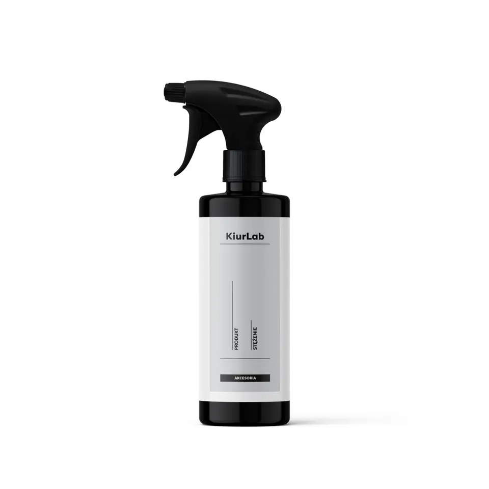 KiurLab Pusta butelka z etykietą i triggerem.