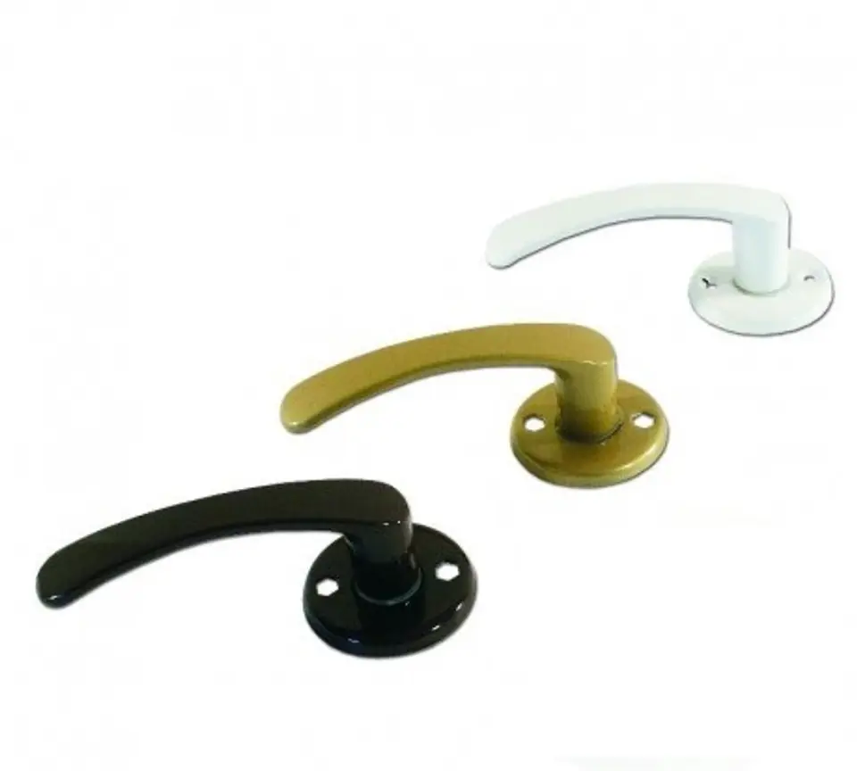 Klamka malowana na szyldzie okrągłym Klamka drzwiowa aluminiowa na szyldzie okrągłym. Dostepne kolory: biały, brązowy, czarny, złoty.