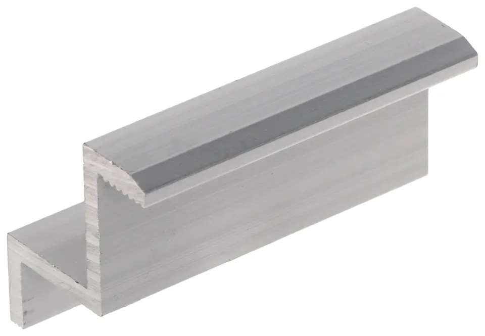 Klamra końcowa, przeznaczona do mocowania skrajnie rozstawionych paneli fotowoltaicznych na profilu montażowymPowierzchnia dociskająca ramę panelu jest ryflowana co gwarantuje lepsze trzymanie panelu