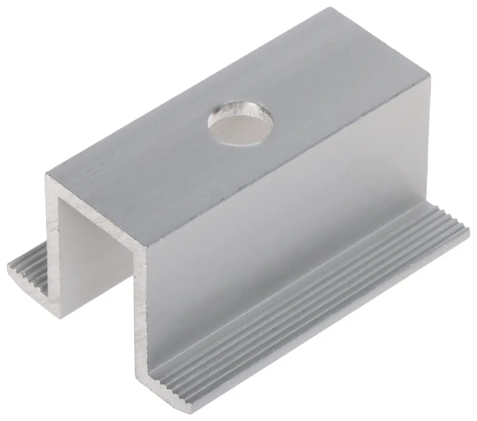 Klamra środkowa PV-KS/50/S służy do mocowania paneli fotowoltaicznych do szyn montażowychPowierzchnia dociskająca ramę panelu jest ryflowana co gwarantuje lepsze trzymanie panelu