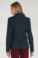Krój fit, dopasowany. Kołnierz z klasycznymi klapami. Długi rękaw. Poduszki na ramionach. Długość w linię bioder. Zapięcie na jeden guzik. Z przodu kieszenie z klapą. Posiada podszewkę. Skład: 75% poliester, 23% wiskoza, 2% elastan Podszewka: 100% poliester Modelka na zdjęciu ma 176 cm wzrostu i ma sobie rozmiar 36.