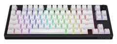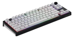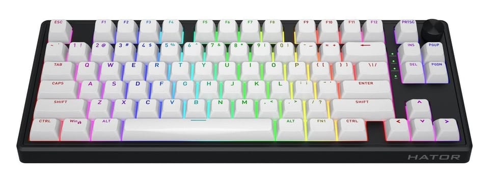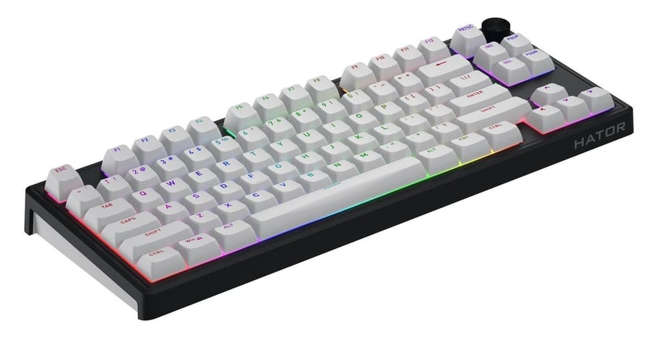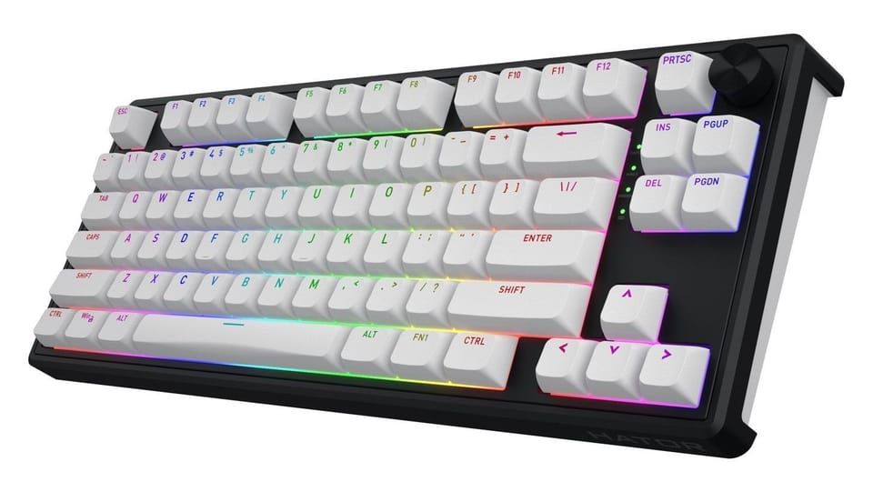 Hator Skyfall 80 Wireless w eleganckiej, biało-czarnej kolorystyce to klawiatura zaprojektowana dla użytkowników, którzy oczekują elastyczności i najwyższej jakości wykonania. Dzięki łączności Tri-Mode możesz swobodnie przełączać się między szybkim połączeniem przewodowym USB-C, stabilnym trybem bezprzewodowym 2.4 GHz z dedykowanym odbiornikiem oraz wygodnym Bluetooth, dostosowując sposób pracy do posiadanego sprzętu i aktualnych potrzeb. Sercem urządzenia są fabrycznie nasmarowane, mechaniczne przełączniki liniowe HATOR Aurum Lemon, które zapewniają lekką, płynną aktywację i wyciszone działanie przy żywotności sięgającej 70 milionów kliknięć, a zintegrowana soczewka dodatkowo wzmacnia podświetlenie, gwarantując doskonałą czytelność oznaczeń w każdych warunkach.