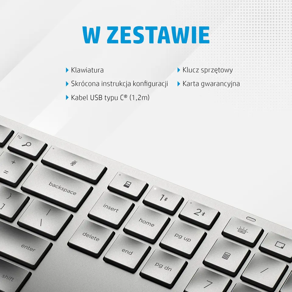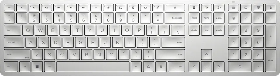 Dostosuj swoją klawiaturę za pomocą HP Accessory Center (HPAC) i ogranicz liczbę niepotrzebnych naciśnięć klawiszy, programując ponad 20 klawiszy do najczęściej używanych funkcji. Ponadto możesz dostosować podświetlenie, intensywność światła, zaplanować włączenie trybu uśpienia. Podłącz do 3 urządzeń - dwa przez Bluetooth® i jedno przez odbiornik USB i przełączaj między nimi za pomocą jednego przycisku. Możes szybko sparować urządzenie z komputerem z systemem Windows 10 dzięki Microsoft Swift Pair. Klawiatura dzięki podwyższonym i wypukłym klawiszom zapewnia wygodę pisania. Akumulator pozwala na pracę do 6 miesięcy.