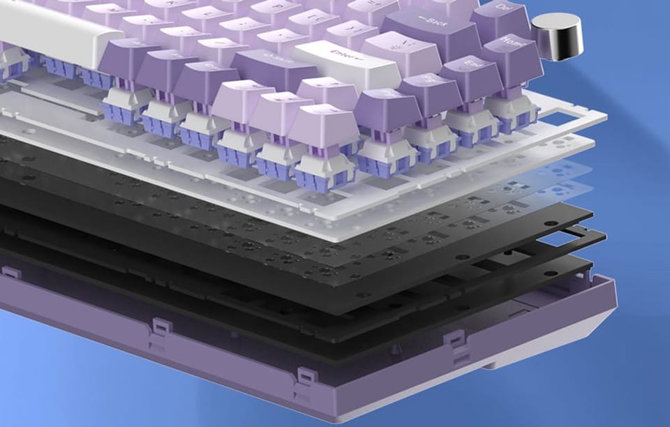 MageGee SKY81 oparta jest na technologii Gasket Mount, która redukuje hałas i zapewnia miękkie, responsywne wrażenia podczas pisania. Pięć warstw materiałów tłumiących eliminuje niepożądane dźwięki, zapewniając cichą i komfortową pracę, niezależnie od intensywności użytkowania.